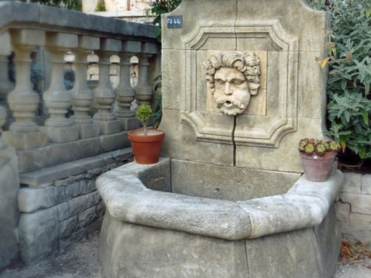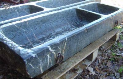 Bassin en pierre, grille ancienne, gouttière en fonte, fontaine en pierre…